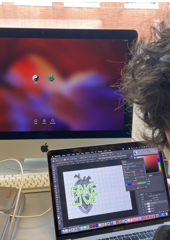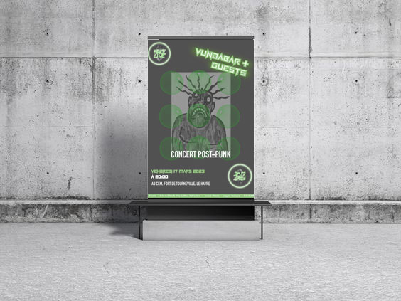 Création d’un logo pour Fake Live, un promoteur de concerts au Havre. Le logo et les affiches devaient refléter une identité Rock and Roll.
